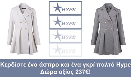 Το hype διοργανώνει διαγωνισμό και σας δίνει τη δυνατότητα να κερδίσετε 2 παλτά HYPE, δώρα αξίας 237 ευρώ.