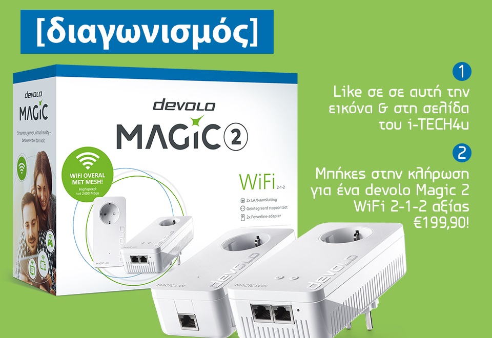 To i-TECH4u διοργανώνει διαγωνισμό και σας δίνει τη δυνατότητα να κερδίσετε ένα Powerline devolo Magic 2 WiFi 2-1-2 Starter Kit, αξίας €199.90!