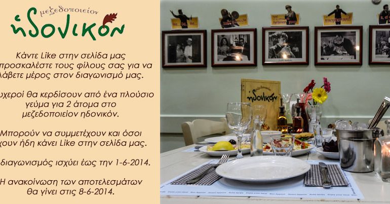 Το idonikon.gr διοργανώνει διαγωνισμό και σας δίνει τη δυνατότητα να κερδίσετε 3 πλούσια γεύματα για 2 άτομα!