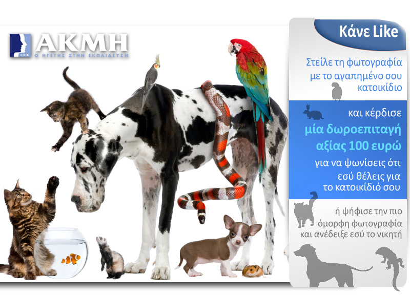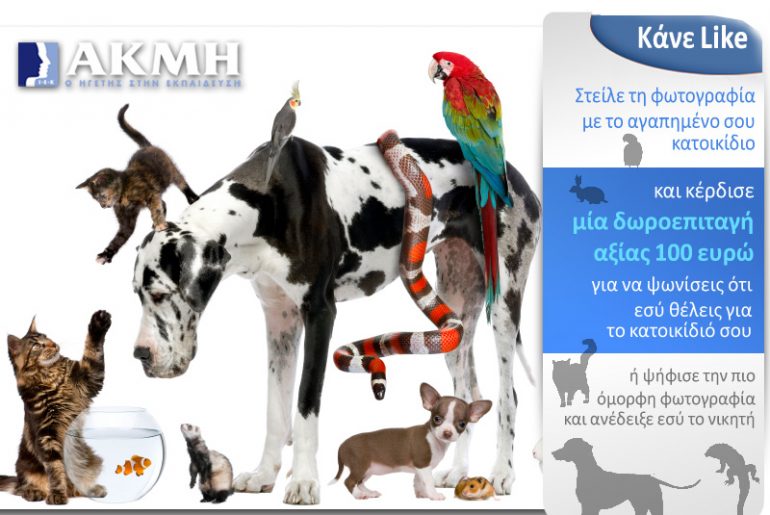Το ΙΕΚ ΑΚΜΗ διοργανώνει το διαγωνισμό “Το αγαπημένο μου κατοικίδιο” και σας δίνει τη δυνατότητα να κερδίσετε μια δωροεπιταγή αξίας 100 ευρώ από αλυσίδα καταστημάτων για κατοικίδια!
