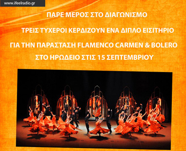 Το ifeelradio.gr διοργανώνει διαγωνισμό και σας δίνει τη δυνατότητα να κερδίσετε 3 διπλές προσκλήσεις για την Flamenco παράσταση Carmen & Bolero.