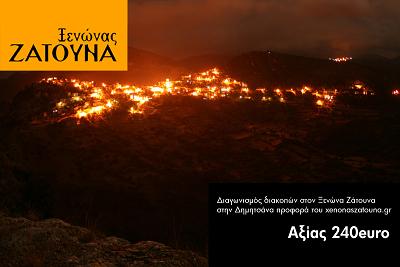 Το δώρο είναι μια προσφορά του Ξενώνα Ζάτουνα και η προσφορά για τον νικητή του διαγωνισμού περιλαμβάνει 2 διανυκτερεύσεις σε δίκλινο δωμάτιο αξίας 240 ευρώ και ισχύει για την περίοδο από 30 Νοεμβρίου μέχρι 10 Δεκεμβρίου.