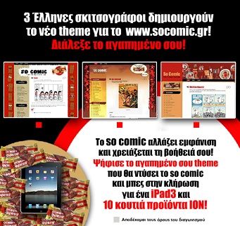 Η σελίδα socomic.gr και η ION Sokofreta διοργανώνουν διαγωνισμό και σας δίνουν τη δυνατότητα να κερδίσετε ένα ipad3 και 10 κουτιά προϊόντα ΙΟΝ.