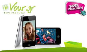 To i-TECH4u σε συνεργασία με το ηλεκτρονικό κατάστημα gadgets και δώρων Vour.gr, σου δίνουν τη δυνατότητα να κερδίσεις το πιο εξελιγμένο φορητό media player της αγοράς, με οθόνη αφής Retina 3,5”, δύο κάμερες για εγγραφή HD βίντεο και βίντεο κλήσεις, ενσωματωμένο Wi-Fi και πρόσβαση στο App Store της Apple, αξίας €229.