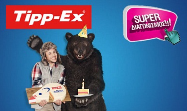 O Κυνηγός και η Αρκούδα γιορτάζουν τα γενέθλιά τους στο YouTube και το Tipp-Ex σας δίνουν τη δυνατότητα να γράψετε και να ξαναγράψετε την ιστορία ανακαλύπτοντας την απρόσμενη συνέχεια και κερδίζοντας σούπερ δώρα –προσφορά της BIC ΒΙΟΛΕΞ Α.Ε. Κάθε πακέτο περιλαμβάνει: ένα συλλεκτικό μπλουζάκι της καμπάνιας Tipp-Ex «Hunter & Bear», μία διορθωτική ταινία Micro Tape Twist, δύο Mini Pocket Mouse (ένα με σχέδιο και ένα κανονικό) και ένα διορθωτικό Rapid.