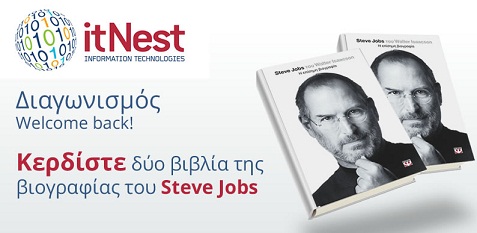 Το itNest διοργανώνει διαγωνισμό στο Twitter και σας δίνει τη δυνατότητα να κερδίσετε δύο βιογραφίες του Steve Jobs.