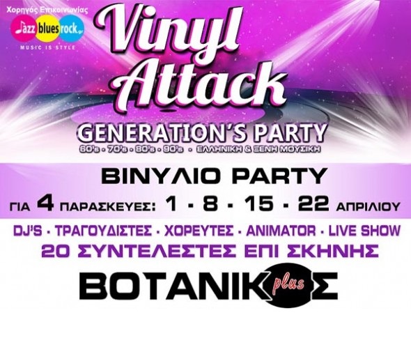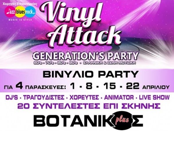 Το jazzbluesrock.gr διοργανώνει διαγωνισμό και σας δίνει τη δυνατότητα να κερδίσετε 5 διπλές προσκλήσεις για το «Vinyl Attack – Generations Party» στο Βοτανικός Plus την Παρασκευή 1/4!
