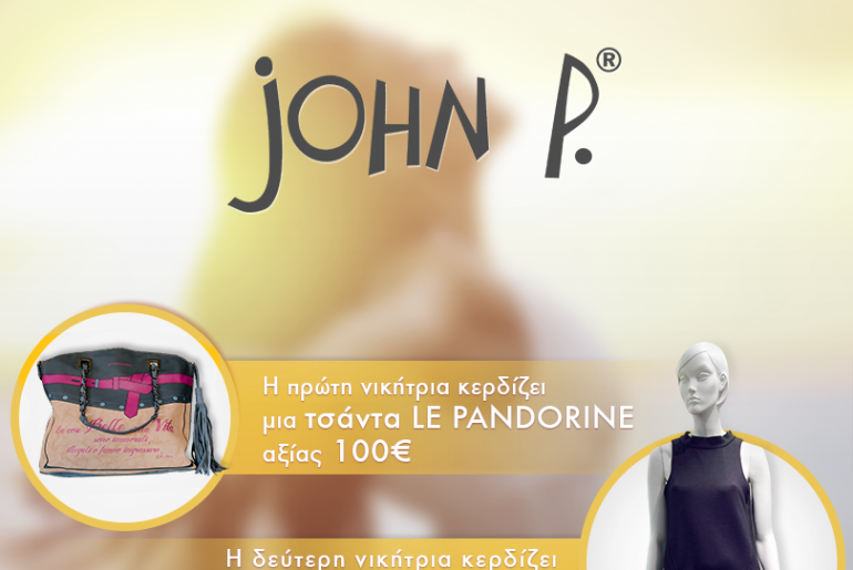 Η σελίδα John P. διοργανώνει διαγωνισμό και σας δίνει τη δυνατότητα να κερδίσετε μια τσάντα LE PANDORINE αξίας 100€ και ένα βραδινό φόρεμα John P. αξίας 80€.
