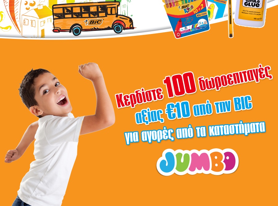 Το Jumbo διοργανώνει διαγωνισμό και δίνει τη δυνατότητα σε 100 τυχερούς να κερδίσουν από μία δωροεπιταγή αξίας €10 για αγορές στα καταστήματα!