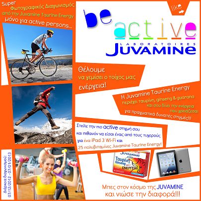 Η σελίδα Juvamine Taurine Energy διοργανώνει διαγωνισμό και σας δίνει τη δυνατότητα να κερδίσετε ένα iPad 4 Retina 16GB wifi και 25 συσκευασίες Juvamine Taurine Energy.