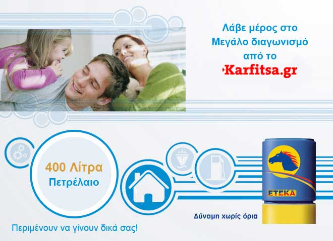 Το karfitsa.gr διοργανώνει διαγωνισμό και σας δίνει τη δυνατότητα να κερδίσετε 400 λίτρα πετρέλαιο προσφορά της εταιρείας «ΕΤΕΚΑ»!
