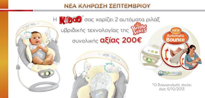 Το Kiddo διοργανώνει διαγωνισμό και σας δίνει τη δυνατότητα να κερδίσετε 2 αυτόματα ριλάξ υβριδικής τεχνολογίας της Bright Starts αξίας 200€.