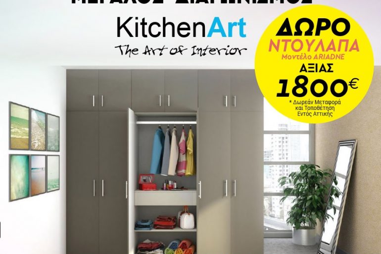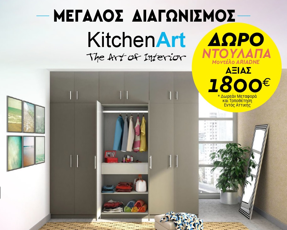 Η KitchenArt διοργανώνει διαγωνισμό και σας δίνει τη δυνατότητα να κερδίσετε μία ντουλάπα Ariadne, αξίας 1800€!