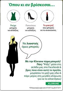 Η αλήθεια είναι πως όπου κι’ αν βρίσκεσαι… Ρούχα μπορείς να αλλάξεις. Παπούτσια μπορείς να αλλάξεις. Το μακιγιάζ σου μπορείς να το ανανεώσεις. Να λουστείς όμως μπορείς; Με την Klorane τώρα μπορείς! Πώς; “Ψάξε” μέσα στη σελίδα μας στο Facebook & βρες ποιο είναι αυτό το προϊόν, μοιράσου το μαζί μας στο Tab στα αριστερά «Όπου κι αν βρίσκεσαι…» & πάρε μέρος στη μεγάλη κλήρωση που θα γίνει 1η Ιανουαρίου για να το αποκτήσεις! Νέος Super Styling διαγωνισμός!