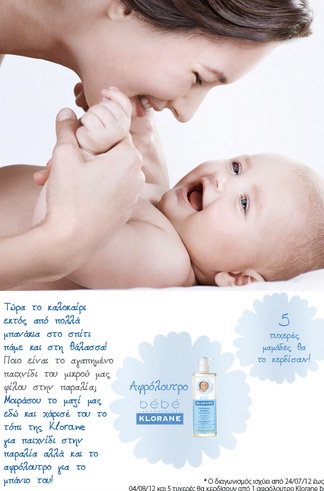 Η σελίδα Klorane Greece διοργανώνει διαγωνισμό και σας δίνει τη δυνατότητα να κερδίσετε 5 αφρόλουτρα Klorane bebe.