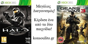 Ο πρώτος διαγωνισμός του konsoulito.gr ξεκίνησε και κληρώνει δύο παιχνίδια για Xbox 360 και συγκεκριμένα τα: Halo: Combat Evolved Anniversary και Gears of War 3.