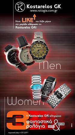 Διαγωνισμός Kostarelos GK με δώρο 3 ρολόγια