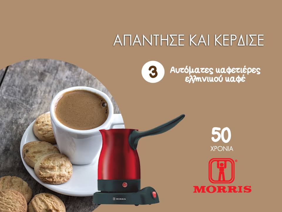 O Kotsovolos διοργανώνει διαγωνισμό και δίνει τη δυνατότητα σε 3 τυχερούς να κερδίσουν από ένα Morris S1429GCM για τέλειο ελληνικό καφέ!