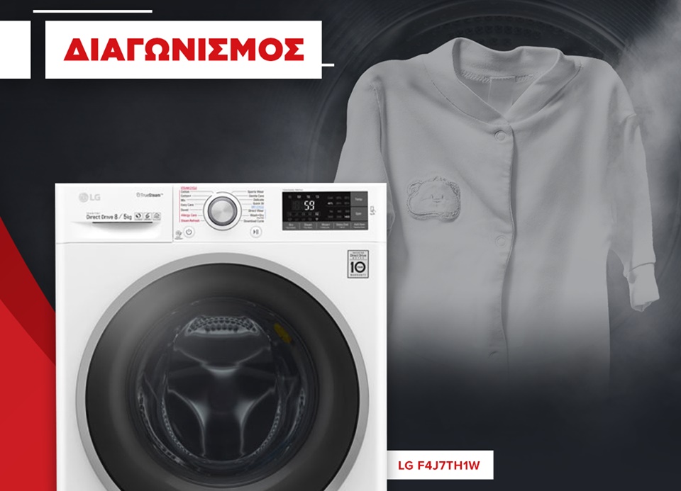 O Kotsovolos διοργανώνει διαγωνισμό και σας δίνει τη δυνατότητα να κερδίσετε ένα Πλυντήριο-Στεγνωτήριο LG F4J7TH1W με πρόγραμμα ατμού True Steam, λειτουργία WiFi για απομακρυσμένο έλεγχο και τεχνολογία Eco Hybrid για εξοικονόμηση νερού και χρόνου!