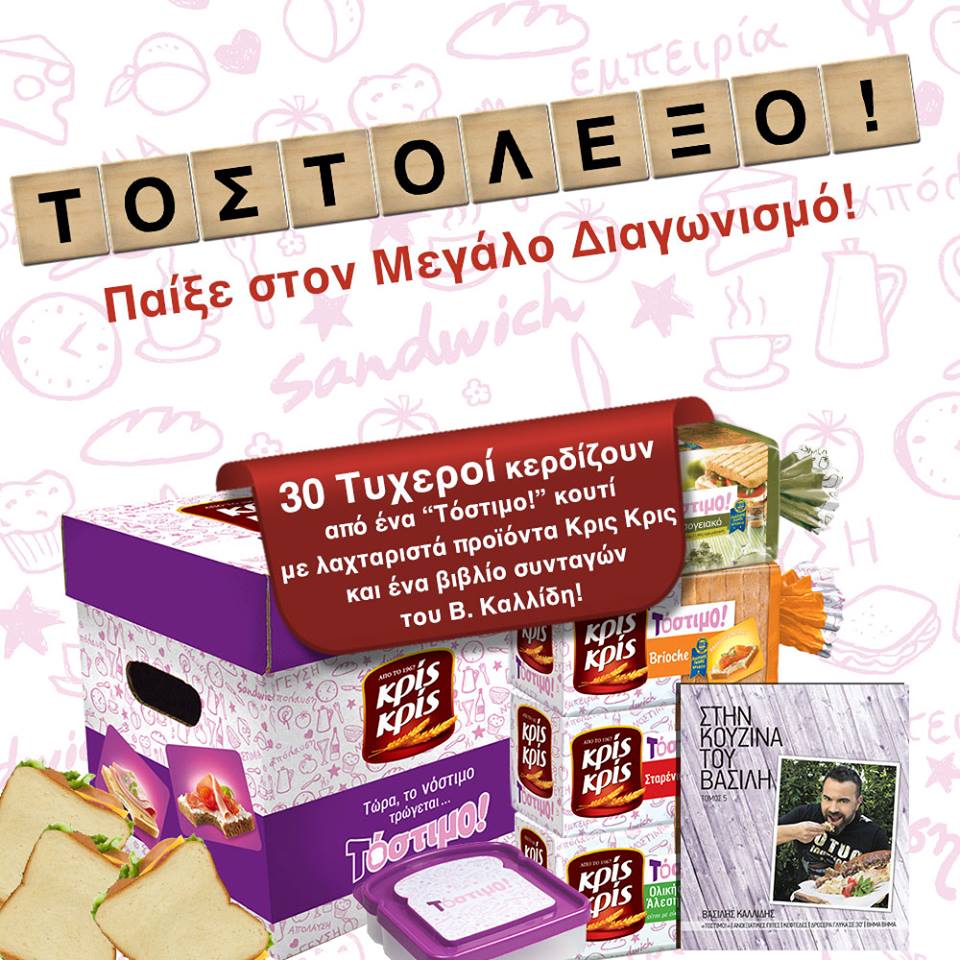 Η σελίδα Κρις Κρις διοργανώνει διαγωνισμό και δίνει τη δυνατότητα σε 30 τυχερούς να κερδίσουν τόστιμο κουτί και βιβλία συνταγών του Β. Καλλίδη!