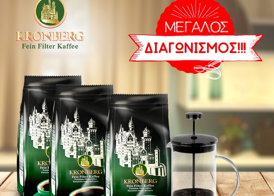 Ο Kronberg Premium Filter Coffee διοργανώνει διαγωνισμό και δίνει τη δυνατότητα σε 5 τυχερούς να κερδίσουν από 3 συσκευασίες καφέ των 250g και μία ατομική καφετιέρα!