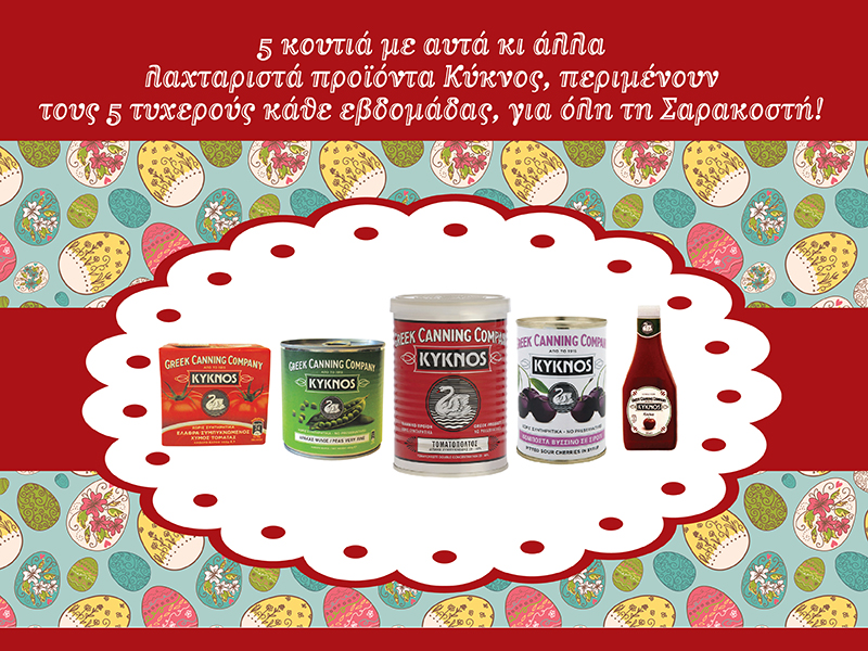 O νέος πασχαλινός διαγωνισμός του Κύκνου κληρώνει κάθε εβδομάδα 5 τυχερούς φίλους της σελίδας και τους στέλνει κουτιά με λαχταριστά προϊόντα Κύκνος για τις σαρακοστιανές τους συνταγές και το πασχαλινό τραπέζι!