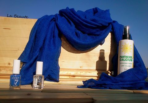 Αντιηλιακό προσώπου και σώματος, 2 μανό της MD Professionnel express up to 7 ( χρώμα- top coat ), και ένα φουλάρι στο χρώμα του καλοκαιριού.