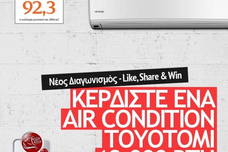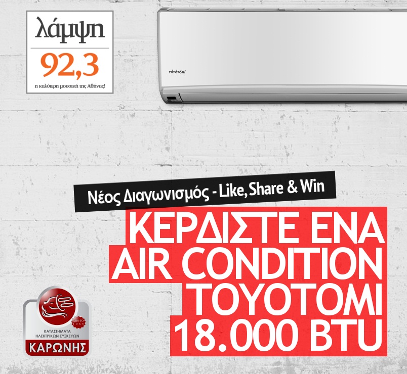 O λάμψη fm  διοργανώνει διαγωνισμό και σας δίνει τη δυνατότητα να κερδίσετε ένα Air Condition Toyotomi 18.000 btu!