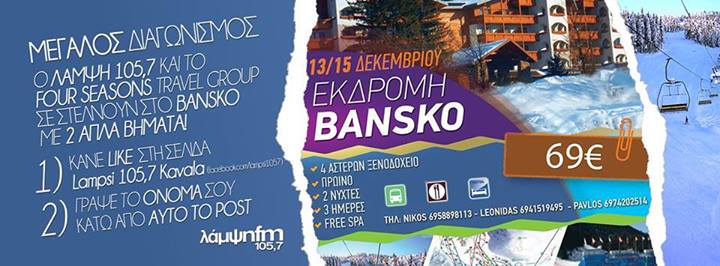 Ο Λάμψη fm 105,7 διοργανώνει διαγωνισμό και σας δίνει τη δυνατότητα να κερδίσετε ένα 3ήμερο στο Bansko!