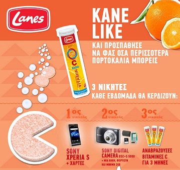 Η σελίδα Lanes Health διοργανώνει διαγωνισμό και σας δίνει τη δυνατότητα κάθε εβδομάδα να κερδίσετε ένα Sony Xperia S+χάρτες (1ος νικητής), μια Sony Digital Camera DSC – S 5000 + ΘΗΚΗ+ΦΟΡΤΙΣΤΗΣ+ΜΝΗΜΗ 2GB (2ος νικητής) και 3 tubes με αναβράζουσες Βιταμίνες C (3ος νικητής).