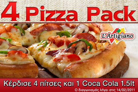 Τα εστιατόρια L’Artigiano διοργανώνουν νέο διαγωνισμό και χαρίζουν σε έναν τυχερό νικητή 4 πίτσες και 1 Coca Cola 1.5lt