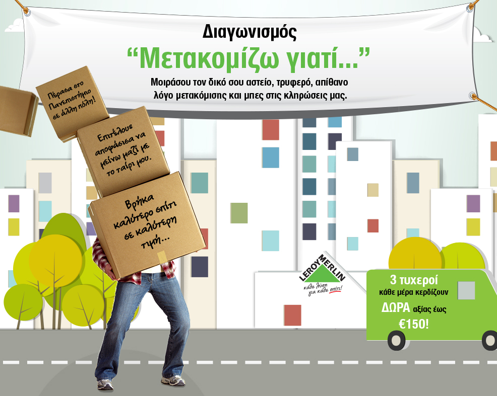 Το Leroy Merlin διοργανώνει διαγωνισμό και σας δίνει τη δυνατότητα να κερδίσετε 3 δώρα κάθε μέρα, αξίας έως 150 ευρώ!