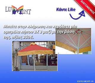 Το Leve Tent διοργανώνει διαγωνισμό και σας δίνει τη δυνατότητα να κερδίσετε μία ομπρέλα κήπου 3Χ3 με την βάση της αξίας 350€.