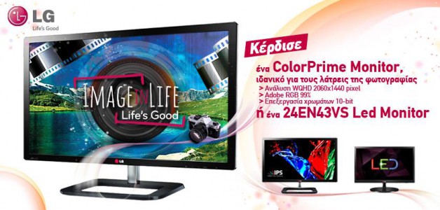 Η LG Hellas διοργανώνει διαγωνισμό και σας δίνει τη δυνατότητα να κερδίσετε 1 οθόνη LG ColorPrime 27EA83 και 1 οθόνη LG 24EN43VS.