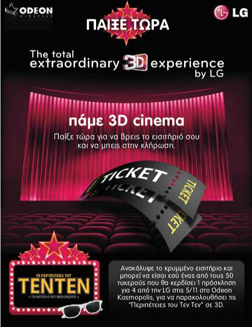 Η LG Hellas διοργανώνει διαγωνισμό και σας δίνει τη δυνατότητα να κερδίσετε μία πρόσκληση για 4 άτομα για να παρακολουθήσετε τις “Περιπέτειες του ΤΕΝ ΤΕΝ – Το μυστικό του μονόκερου”, το Σάββατο 5 Νοεμβρίου στις 17.00 στο ODEON Kosmopolis (Λ.Κηφισίας 73, Μαρούσι).