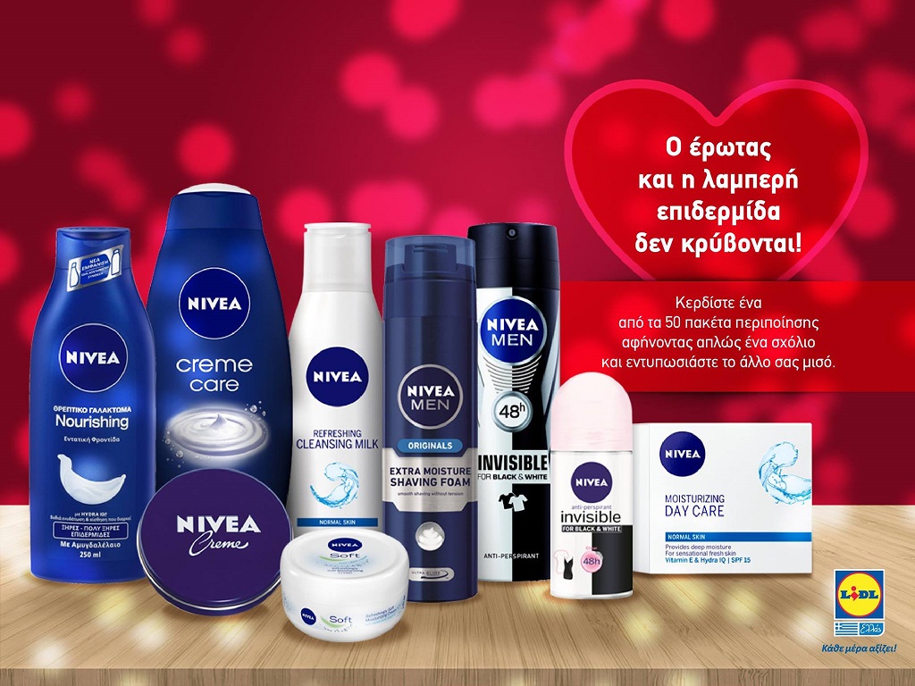 H Lidl Hellas διοργανώνει διαγωνισμό και δίνει τη δυνατότητα σε 50 τυχερούς να κερδίσουν από ένα πακέτο με προϊόντα περιποίησης Nivea και Nivea Men αξίας 40,80€!