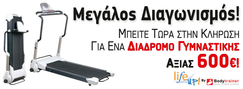 Το Life Up Χαϊδαρίου διοργανώνει διαγωνισμό και σας δίνει τη δυνατότητα να κερδίσετε ένα καινούργιο διάδρομο γυμναστικής αξίας 600 ευρώ!