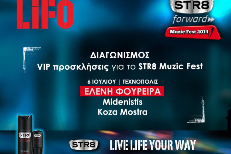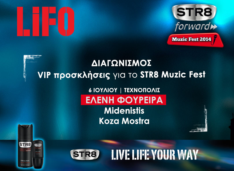 Η lifo.gr διοργανώνει διαγωνισμό και σας δίνει τη δυνατότητα να κερδίσετε 3 διπλές VIP προσκλήσεις για το STR8 Muzic Fest 2014, που θα πραγματοποιηθεί στις 6 Ιουλίου 2014 στην Τεχνόπολη στο Γκάζι.