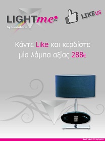 Η σελίδα του Lighting Me Triadafillos διοργανώνει διαγωνισμό στο Facebook και σας δίνει τη δυνατότητα να κερδίσετε μία λάμπα αξίας 288€.