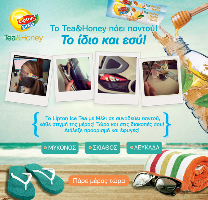 Το Lipton διοργανώνει διαγωνισμό και δίνει τη δυνατότητα σε 3 τυχερούς να κερδίσουν 2 διανυκτερεύσεις µε πρωινό σε Σκιάθο, Μύκονο ή Λευκάδα, σε standard δίκλινο δωµάτιο σε ξενοδοχείο τεσσάρων αστέρων και τα ακτοπλοϊκά έξοδα για τους προορισµούς Σκιάθου & Μυκόνου.