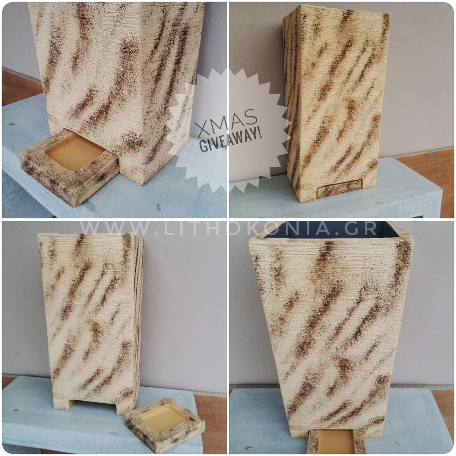 Η σελίδα Λιθοκονία Κατασκευές διοργανώνει διαγωνισμό και σας δίνει τη δυνατότητα να κερδίσετε μία χειροποίητη ζαρντινιέρα με αποσπώμενο “κρυφό” πιατάκι από τη νέα πρωτοποριακή σειρά, αξίας 50€, αποκλειστικά κατασκευασμένη για τον τυχερό!