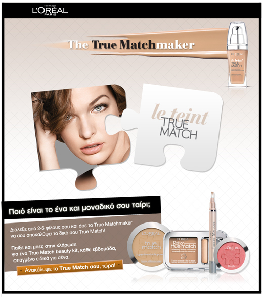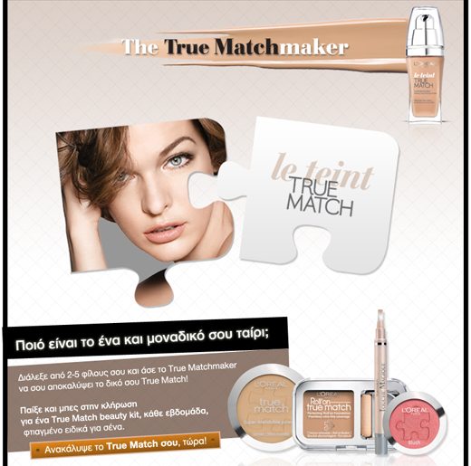 Η L’Oréal Paris διοργανώνει διαγωνισμό στο facebook και σας δίνει τη δυνατότητα να κερδίσετε ένα beauty kit True Match, το οποίο θα περιέχει ένα True Match make-up, μία True Match πούδρα, ένα True Match Concealer και ένα True Match blush.