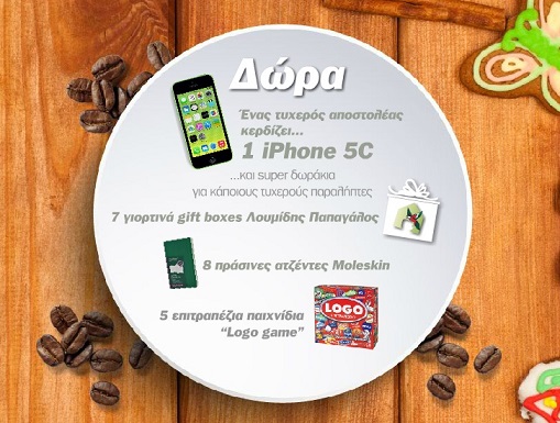 Ο Λουμίδης Παπαγάλος διοργανώνει διαγωνισμό και σας δίνει τη δυνατότητα να κερδίσετε 1 iPhone 5C, χρώματος πράσινου, αξίας 639€, 7 γιορτινά gift boxes Λουμίδης Παπαγάλος, 8 πράσινες ατζέντες Moleskin και 5 επιτραπέζια παιχνίδια “Logo game”.