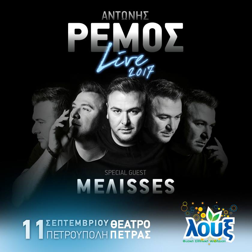 H λουξ διοργανώνει διαγωνισμό και σας δίνει τη δυνατότητα να κερδίσετε 3 διπλές προσκλήσεις για τη συναυλία του Αντώνη Ρέμου τη Δευτέρα 11.09, παρέα με τις Μέλισσες στο Θέατρο Πέτρας στην Πετρούπολη!