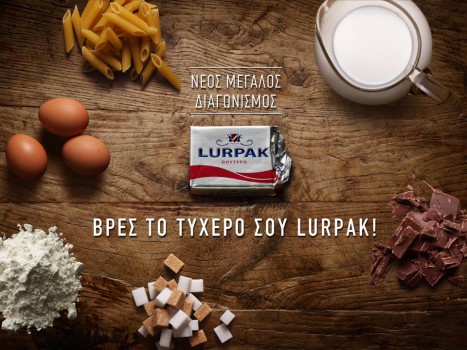 Η σελίδα Lurpak Greece διοργανώνει το διαγωνισμό «Το τυχερό σου Lurpak» και σας δίνει τη δυνατότητα να κερδίσετε ένα σετ από πέντε κουπάτ μπισκότων «Zoulovits» (στιγμιαίο δώρο) ή να μπείτε στην κλήρωση για να διεκδικήσετε ένα μπλέντερ χειρός «Kitchen Aid» κάθε εβδομάδα ή στο τέλος του διαγωνισμού ένα σετ έξι τεμαχίων κατσαρόλες «WMF» και προϊόντα «LURPAK» αξίας 100€.