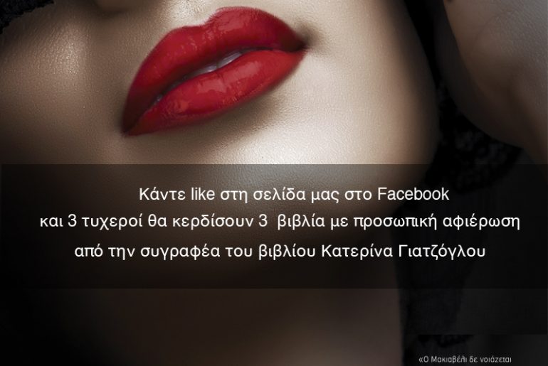 Η “O Μακιαβέλι του Έρωτα” facebook page διοργανώνει διαγωνισμό και σας δίνει τη δυνατότητα να κερδίσετε 3 αντίτυπα του βιβλίου της Κατερίνας Γιατζόγλου!