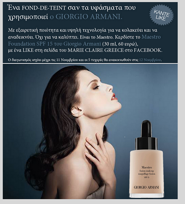 Το Marie Claire Greece διοργανώνει διαγωνισμό και σας δίνει τη δυνατότητα να κερδίσετε το Maestro Foundation SPF15 του Giorgio Armani (30ml, 60€).