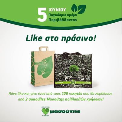 Ο Mασούτης διοργανώνει το διαγωνισμό «Like στο ΠΡΑΣΙΝΟ» και σας δίνει τη δυνατότητα να κερδίσετε 100 σακούλες ΜΑΣΟΥΤΗΣ πολλαπλών χρήσεων.
