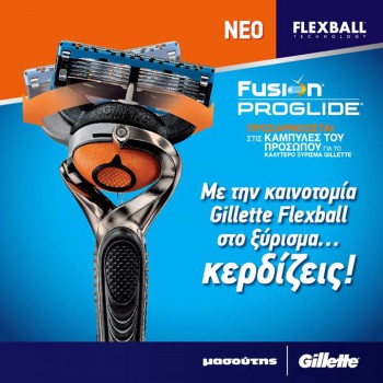 Ο Μασούτης διοργανώνει διαγωνισμό και δίνει τη δυνατότητα σε 6 τυχερούς να κερδίσουν από 1 νέα ξυριστική μηχανή Gillette Fusion Proglide Power με τεχνολογία Flexball TM (η οποία περιλαμβάνει ένα ανταλλακτικό).