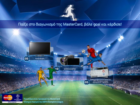 Η σελίδα MasterCard Europe Sprl διοργανώνει διαγωνισμό και δίνει τη δυνατότητα σε 20 τυχερούς να κερδίσουν μετά από κλήρωση: 5 διπλά εισιτήρια για τον αγώνα UEFA Champions League Olympiacos FC – Malmö FF, 5 τηλεοράσεις (32” LED TV) και 10 βιντεοκάμερες χειρός!